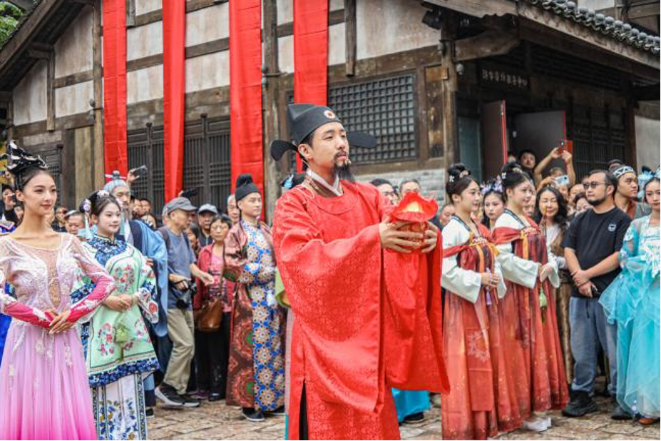 活动启幕,一场集结历代酒礼的盛大展演拉开序幕。演员们身着各朝代服饰,将酒文化背后蕴含的社会变迁与礼仪规范生动呈现,让观众跨越时空,沉浸式感受不同时代酒文化所蕴含的深厚内涵和独特价值。